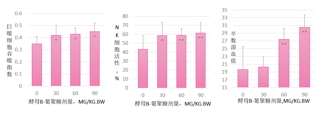 酵母β-葡聚糖能促進(jìn)小鼠的細(xì)胞免疫功能、體液免疫功能和巨噬細(xì)胞功能: