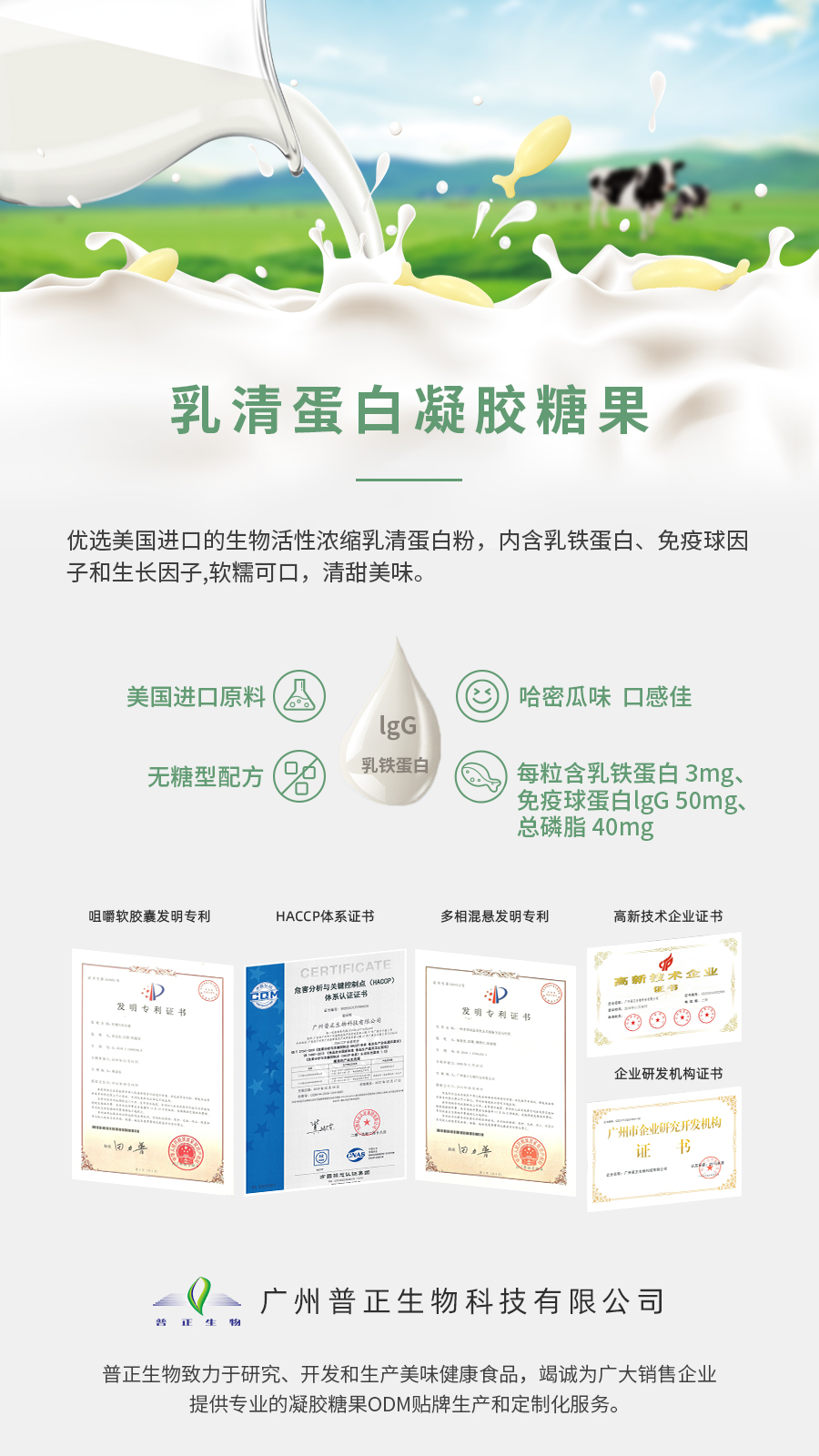 普正乳清蛋白凝膠糖果,將有效乳鐵蛋白內(nèi)含于Q彈爽口的凝膠糖果之中,奶
