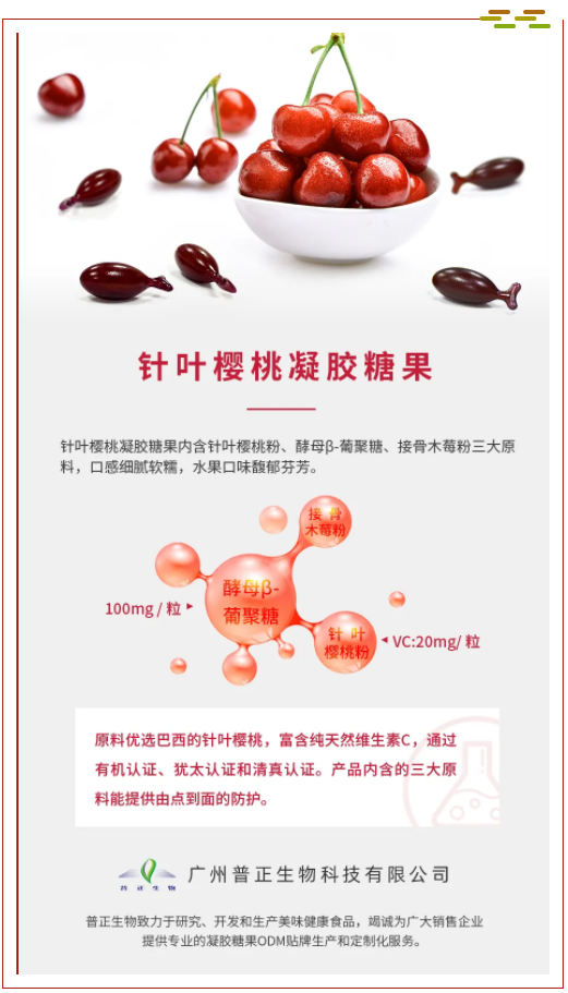 原料選用產(chǎn)自巴西的針葉櫻桃,通過有機(jī)認(rèn)證、猶太認(rèn)證和清真認(rèn)證,為人體提供由點(diǎn)