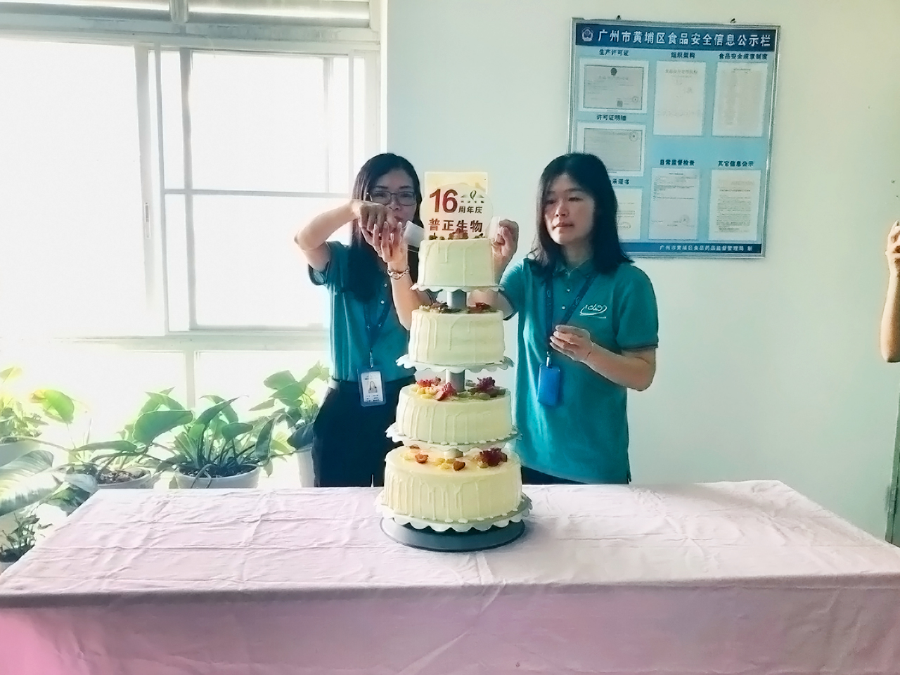 2021年9月9日,普正生物于公司總部舉行十六周年慶,全體員工齊聚一堂,共同歡慶。