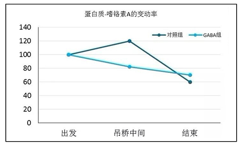 試驗(yàn)結(jié)果表明,過(guò)橋前攝取了GABA的實(shí)驗(yàn)者唾液中嗜鉻素的分泌量明顯比對(duì)照組要少。GABA通過(guò)抑制蛋白質(zhì)-嗜鉻素A上升從而達(dá)到緩解壓力的效果。