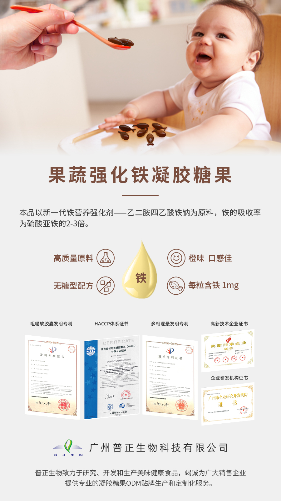 除此之外,補(bǔ)鐵劑中含有甘氨酸螯合鐵,也不失為一種好的選擇。甘氨酸可以在寶寶腸道中將鐵直接運(yùn)送至細(xì)胞中,不和其他食物競(jìng)爭(zhēng)吸收通道,含鐵量高,吸收率高。